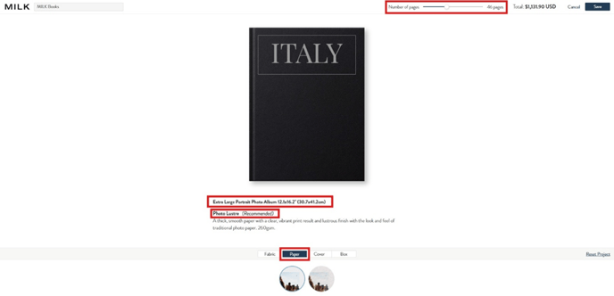 The thickness of your MILK Photo Book or Photo Album depends on a few factors such as the product type, paper type, and page count. If you are unsure about any of these details, you can find them in your project settings.